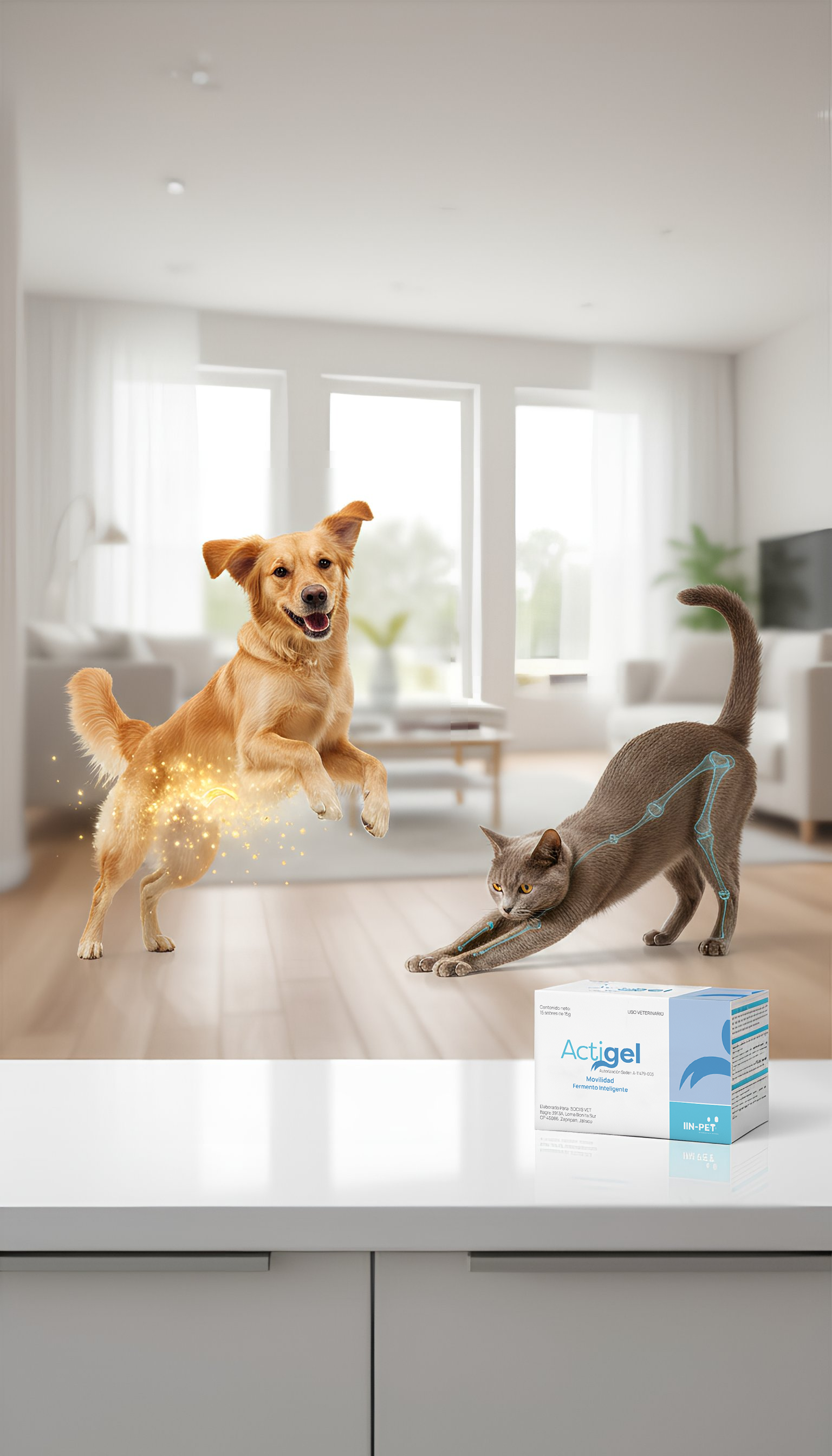 Indicaciones: Actigel movilidad mejora la salud intestinal y la eficiencia alimenticia en perros y gatos, y como apoyo a la salud de las articulaciones.